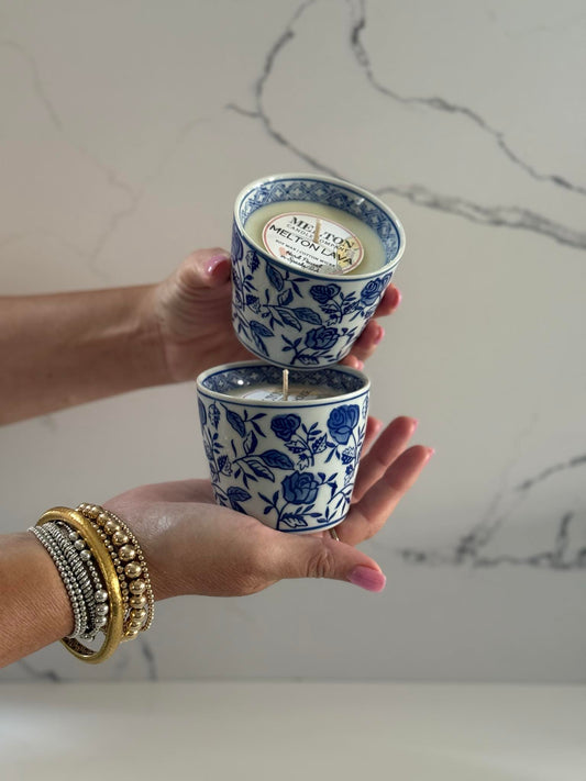 A timeless blue-and-white vessel meets our newest signature fragrance, Southern Grace. Hand-poured with natural soy wax and designed to be reused long after the final burn, this candle brings classic Southern elegance into the modern home.